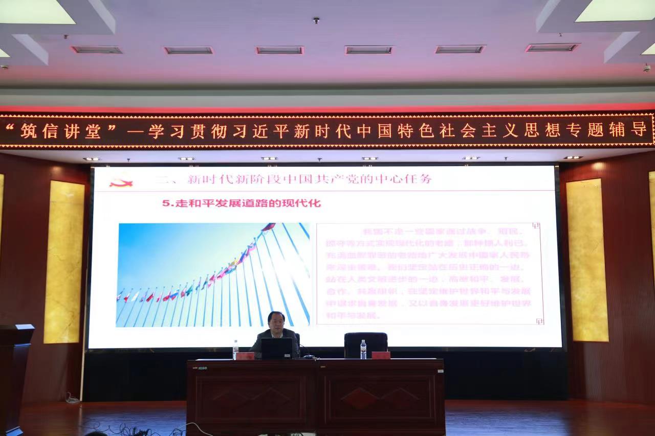 为深入推进学习贯彻习近平新时代中国特色社会主义思想主题教育,5月4日下午,信息工程学院开展“筑信讲堂”-学习贯彻习近平新时代中国特色社会主义思想主题教育专题辅导,邀请马克思主义学院院长布和朝鲁教授作题为《新时代新征程中国共产党使命任务》的辅导讲座。学院党委书记乌迪主持,师生党员180余人参加。