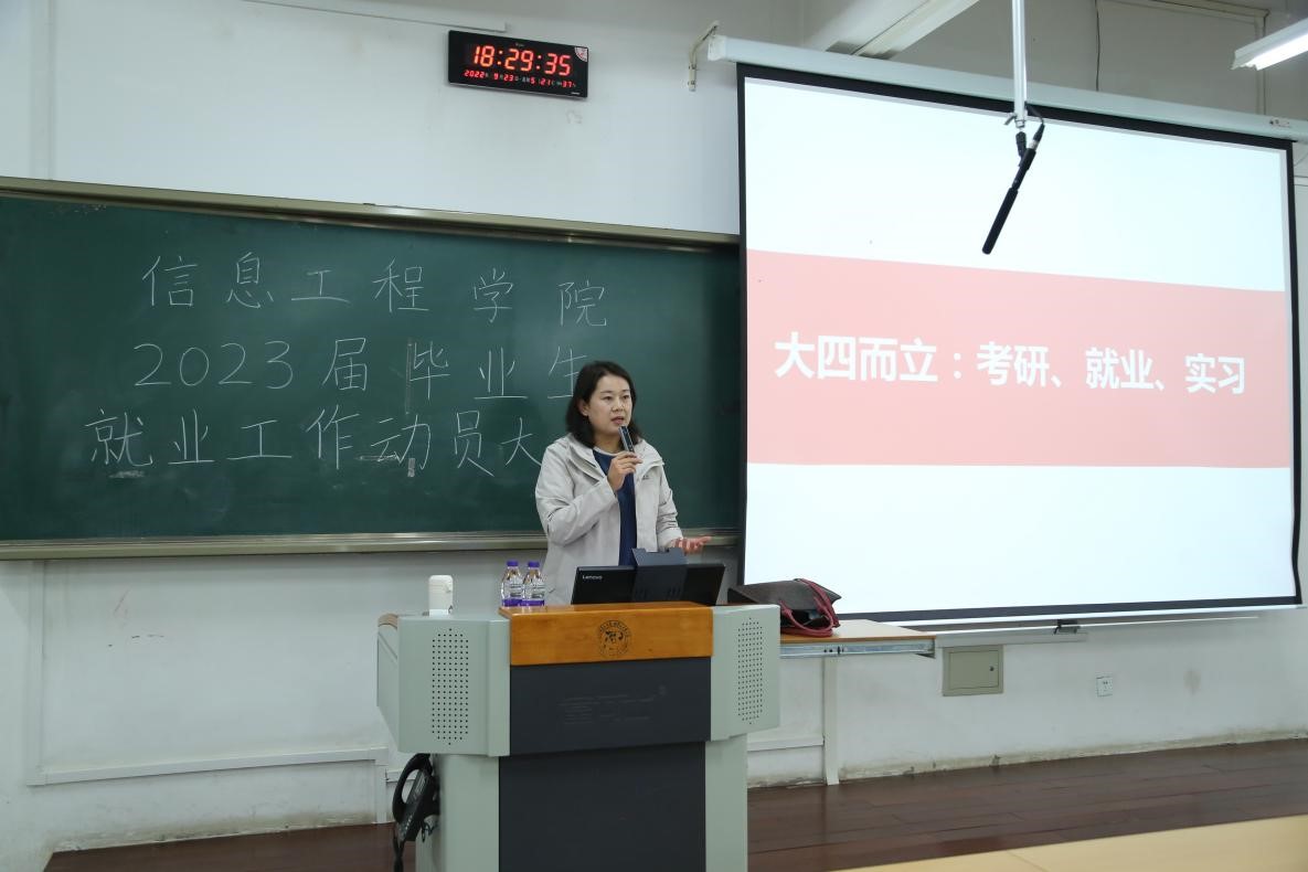 为深入落实就业工作要求,更好地开展2023届毕业生的就业工作,引导学生树立正确的就业观念、鼓励应届毕业生积极就业,确保毕业生顺利毕业、就业,2022年9月24日晚,信息工程学院召开2023届毕业生就业工作动员大会。会议由信息工程学院党委副书记、副院长佟姝捷老师主持,信息工程学院2023届全体毕业生参加会议。