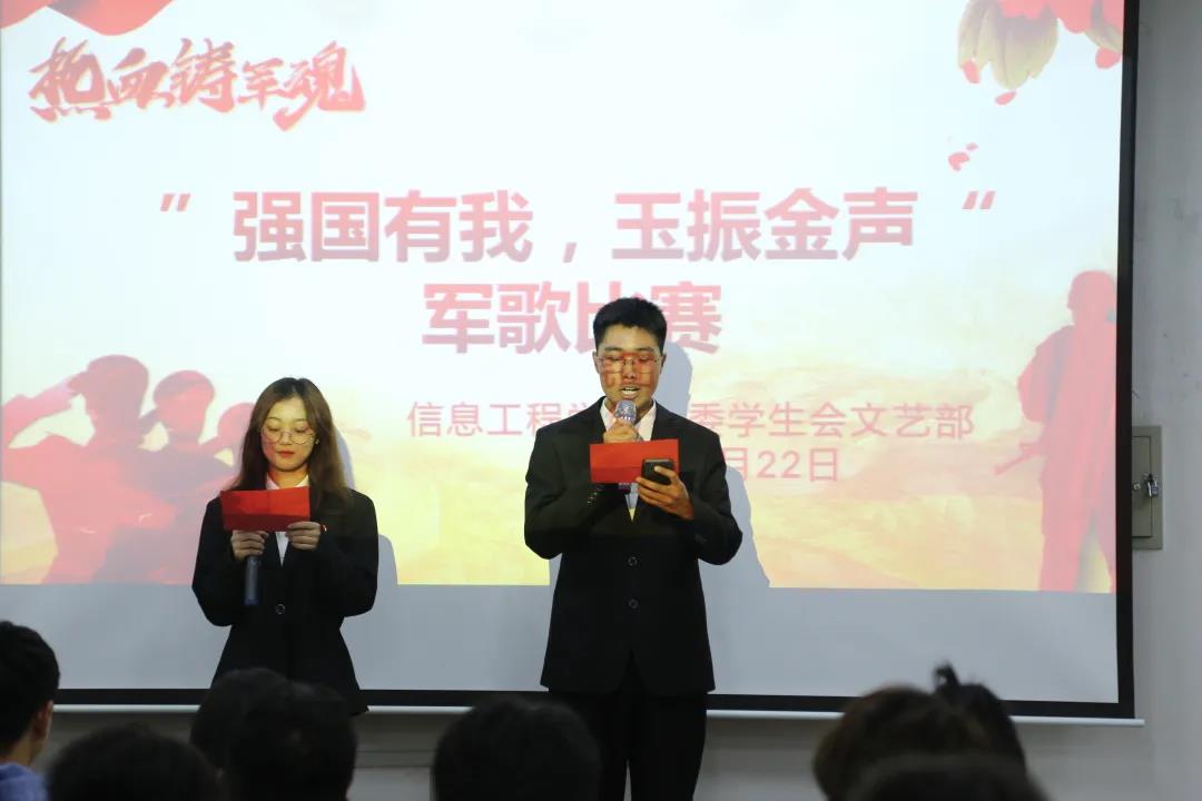 2021年10月22日晚,信息工程学院“强国有我,玉振金声”主题军歌比赛在b辅201成功举办。本次比赛历时约一个半小时,学院大一新生积极参加了本次活动。