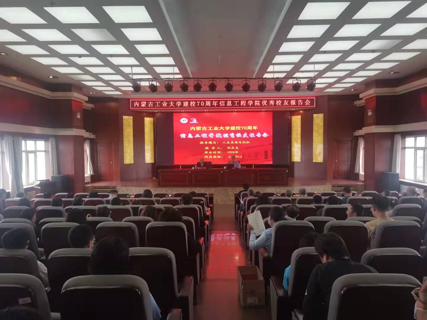 9月15日下午,我院在金川校区电力大楼10楼报告厅举办2场建校70周年优秀校友报告会。受学院邀请,北京元年科技股份有限公司首席架构师兼副总裁、我院94届工电-(2)班刘庆龙及兴和县店子镇党委副书记、我校2012届研究生贺龙两位校友为学院师生做报告。学院党委书记王彩玲,院长李春明、副院长韩建峰,学院部分教师及研究生参加报告会。