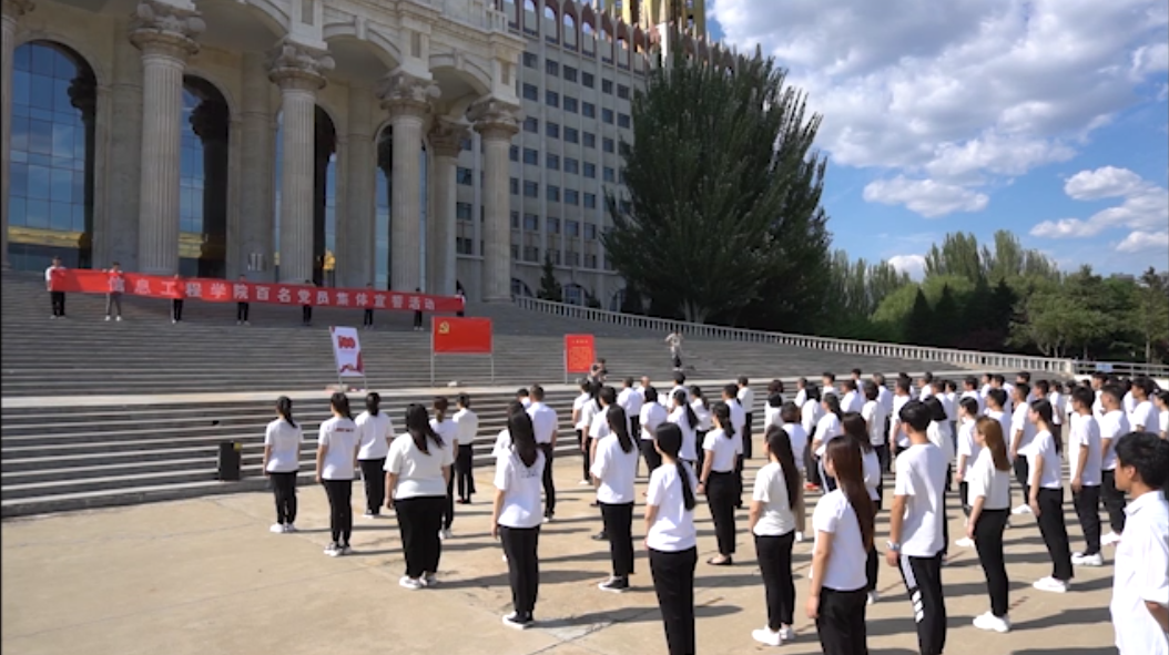 为庆祝中国共产党成立100周年,进一步坚定中共党员的理想信念,强化党员意识,提升党性修养,2021年6月17日内蒙古工业大学信息工程学院师生党员100余人在电力大楼前进行了百名党员宣誓活动。