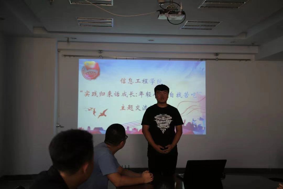 为进一步深化学生知行结合精神,加强学生对“三下乡”实践活动的体会,重拾实践精彩。我院于9月3日晚在电力大楼九楼会议室举行“实践归来话成长:’年轻人要自找苦吃’”主题活动,各分队队员代表到会来分享他们的经验与活动感受。