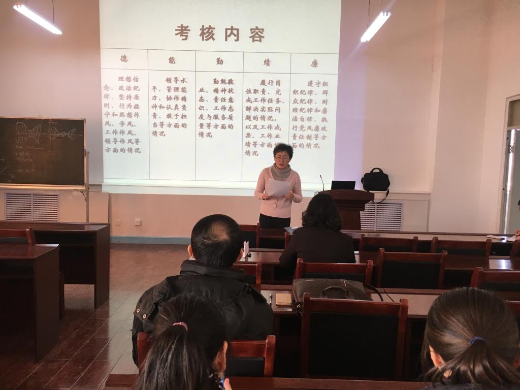 1月7日上午,我院在电力大楼10楼多媒体教室召开2018年度科级干部述职大会,学院院领导、科级干部、各系、中心教师代表参加此次会议,院党委书记王彩玲主持会议。