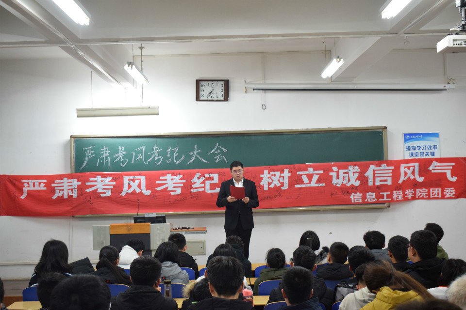 为加强学风建设,营造文明、诚信考试的良好氛围,我院团委于12月18日晚举办“严肃考风考纪 弘扬诚信之风”主题活动,学院各年级学生代表近100余人参加。