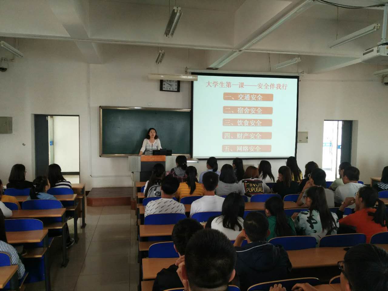 在讲座的最后,许老师提出:希望新生可以注意到安全问题的重要性,把这些容易出现的问题放在心里,安安全全、平平安安的度过自己的大学时光。