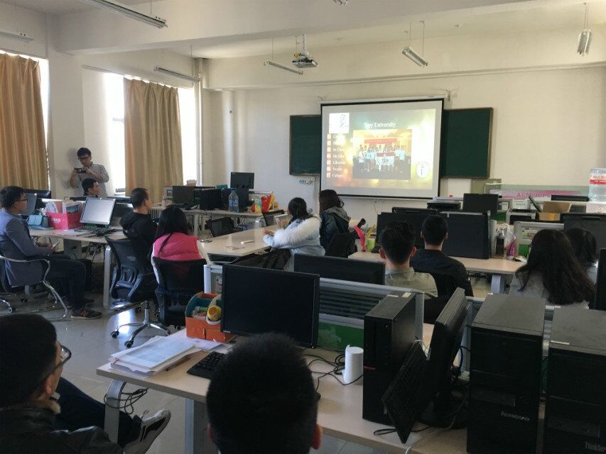 我院于3月30日下午3:00在金川校区软件工程研究室(格物楼B座501)举办了赴日美交换留学归国研究生报告会。本次活动邀请留学归国人员14级计算机技术专业硕士研究生王艳芳(日本三重大学)同学和赵佳宁(美国Troy大学)同学做了报告。