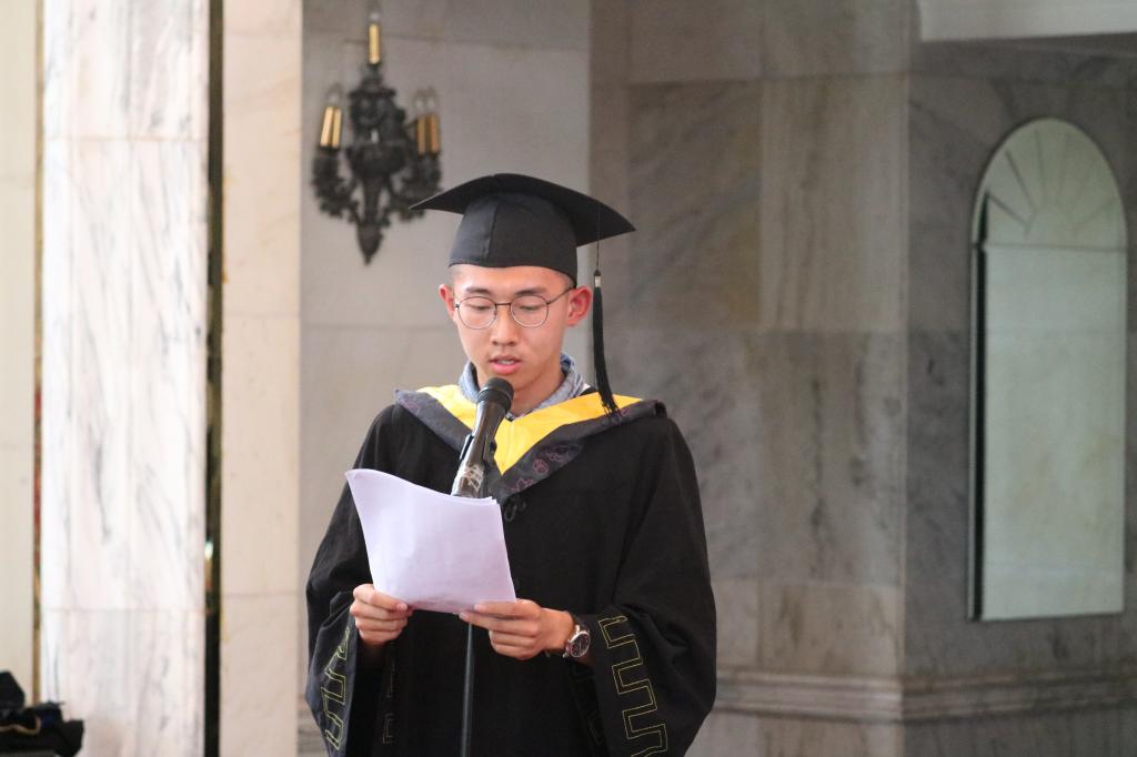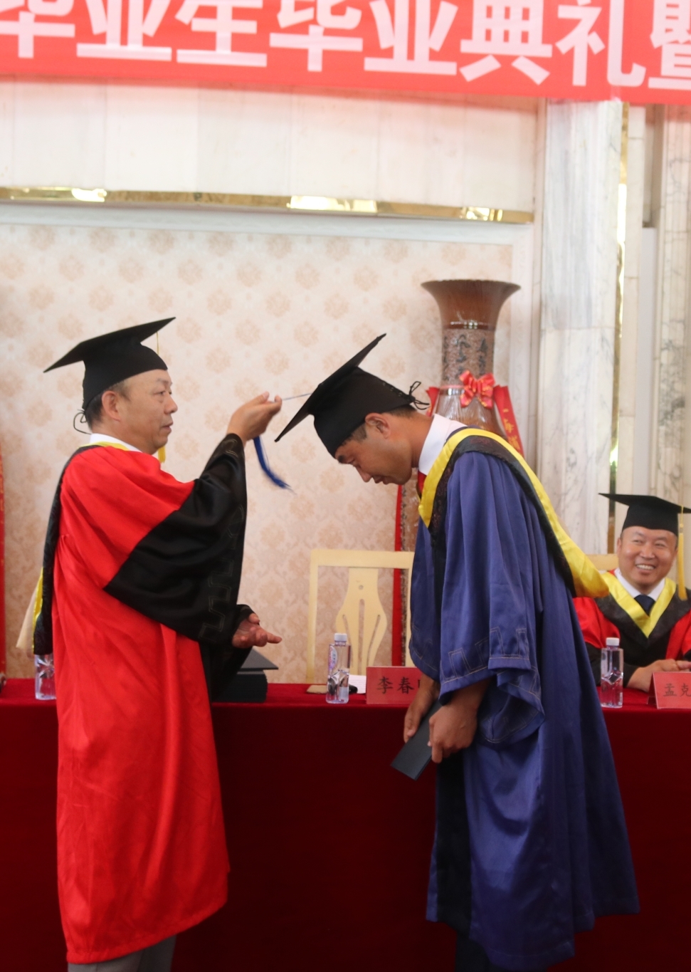 受校长、校学位评定委员会主任委员邢永明教授的委托,学位分委员会主席、院长李春明为2016届获得硕士学位的毕业生授予学位,学院领导及学位分委员会成员为获得学士学位的毕业生授予学位。