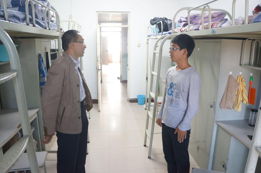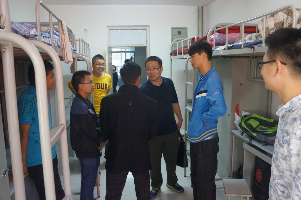 为了进一步做好新生入学教育工作,加快新生适应大学生活,9月14日下午,我院党委书记彭建兵,副书记副院长王金彪、学生辅导员和部分新生班主任一同到新生宿舍走访,了解他们存在的实际困难,帮助他们一一解决。同时,走访老师叮嘱同学们要注意人身财产安全,并通过自身的努力尽快适应大学生活。