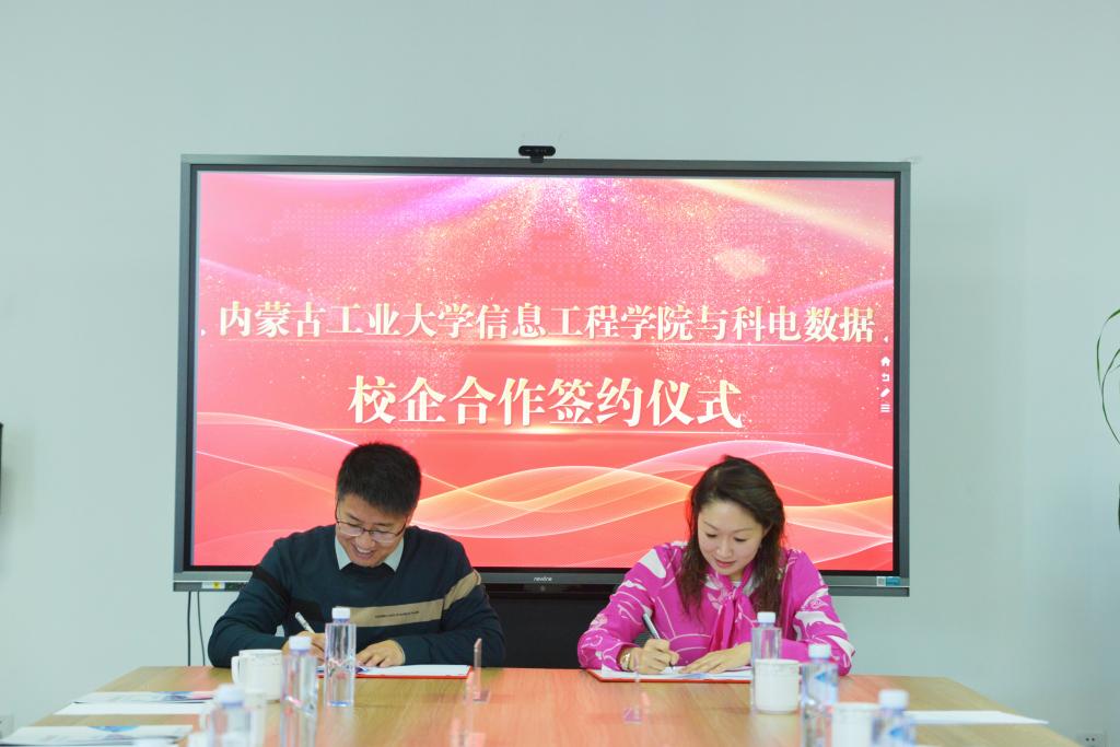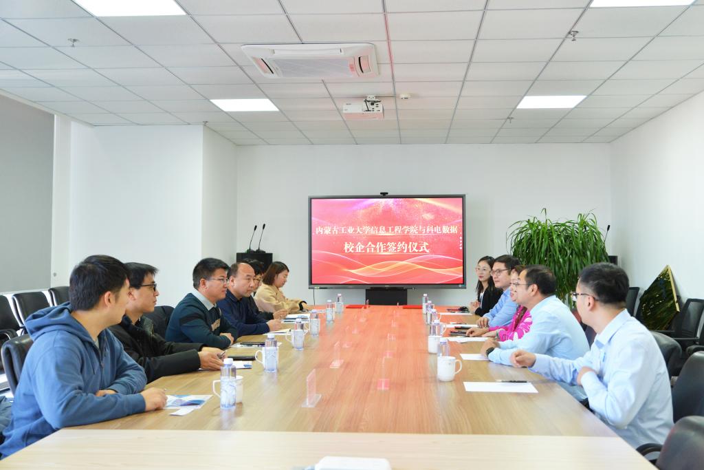 最后,双方就校企合作达成共识,乌迪代表学院与内蒙古科电数据服务有限公司签署共建协议并揭牌,未来校企双方将在物联网、人工智能、雷达技术等领域开展广泛合作交流,共同为推进科技服务地方和人才培养贡献力量。