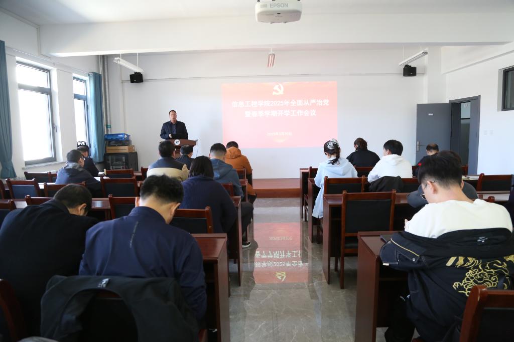 3月20日下午,信息工程学院党委召开了2025年全面从严治党工作会议,总结2024年我院全面从严治党工作,部署2025年重点工作任务。会议由学院党委书记刘建国主持。
