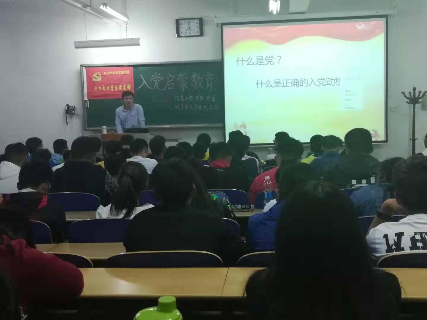 2019年9月25日通信专业学生党支部、 电子专业学生党支部、计算机专业学生党支部分别在教A102、教A105、教A104举行新生入党启蒙教育大会,出席会议的有三位学生党支部书记、支委会成员及19级全体新生。