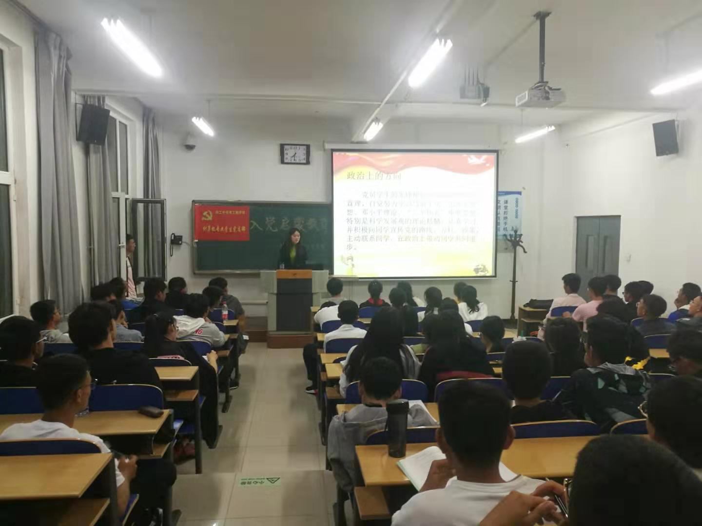 在会上,由党支部书记对2019级新生阐述了党的性质、宗旨、行动指南及党的基本理论知识,强调同学们要端正入党动机并明确了入党动机,要求同学们树立为国家和人民服务的宗旨,紧接着向大家介绍了入党流程及入党申请书书写格式。