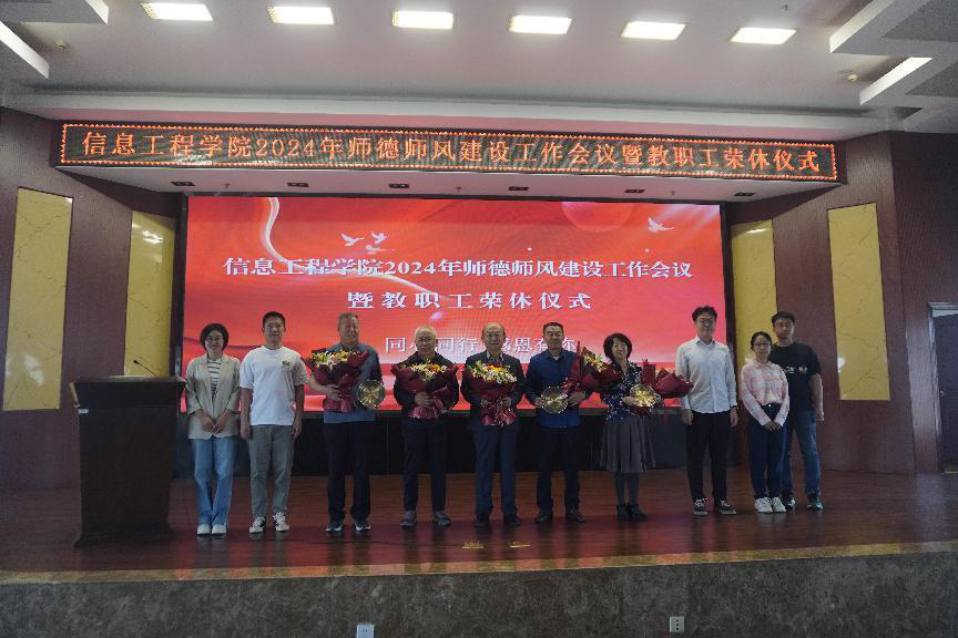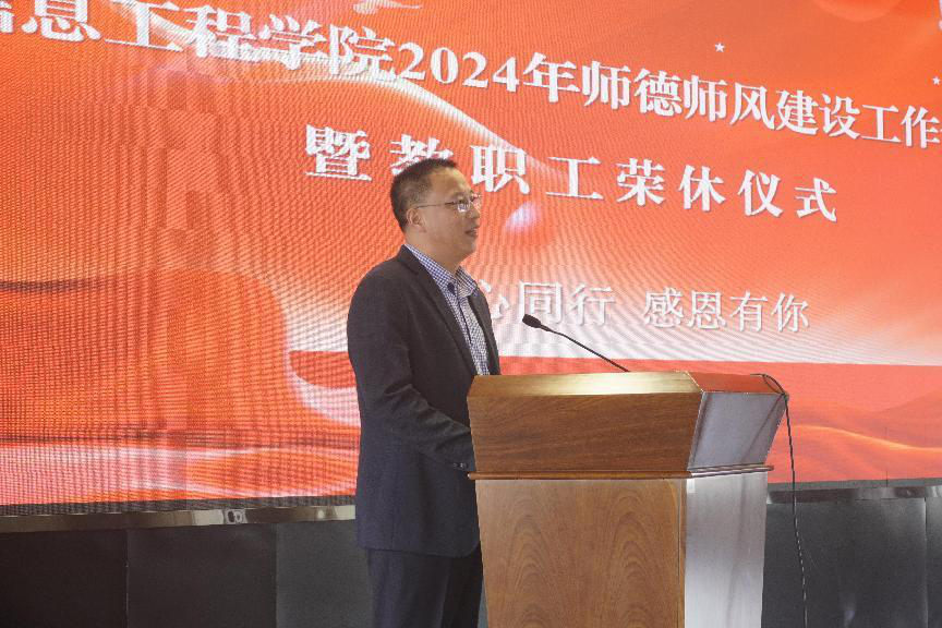 为大力弘扬践行教育家精神,持续加强和改进新时代师德师风建设,9月12日下午,信息工程学院举办2024年师德师风建设工作会议暨教职工荣休仪式。学院领导班子成员、部分荣休教师、在职教师参会。学院党委书记刘建国主持会议。