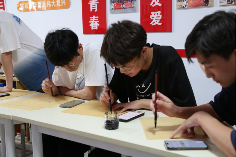 同学们积极参与此次比赛,现场创作以“铸牢中华民族共同体意识”为主题的书法作品。比赛中,同学们热情满满,用一张张佳作,谱写中华文化之美,弘扬中华语言魅力。