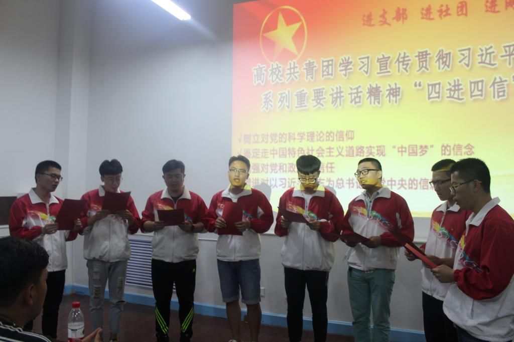 为加强学生对习近平新时代中国特色社会主义思想的理解、深化学生对“四进四信”内容的领悟,牢固树立“四个意识”,坚定“四个自信”,我院于5月16日晚7:00在电力大楼10楼西配举行了“四进四信,争做四可青年”主题活动。