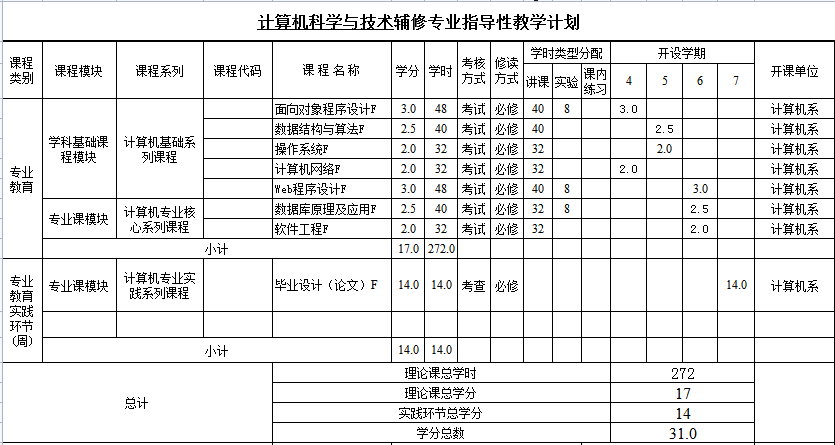 计算机科学与技术辅修专业指导性教学计划