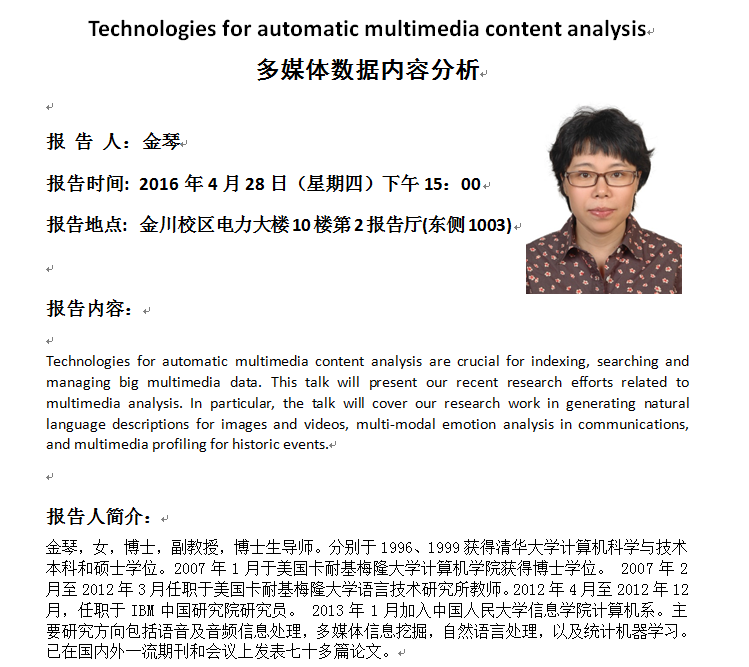 【学术报告】多媒体数据内容分析