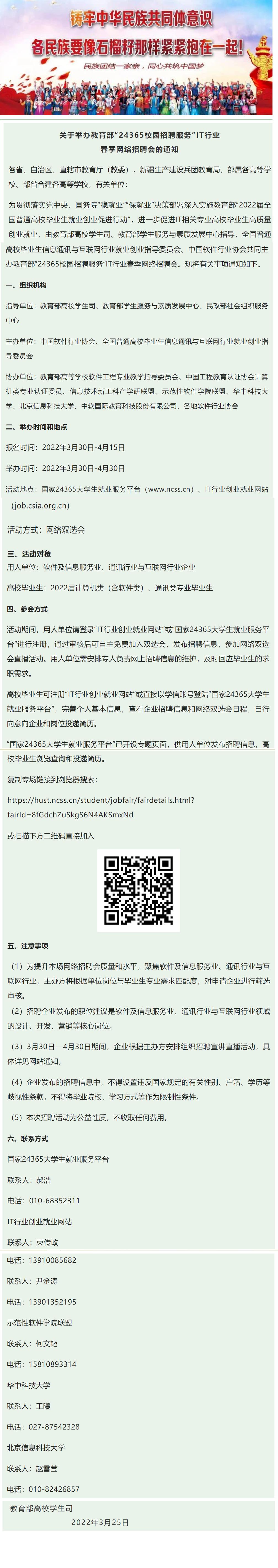 关于举办教育部“24365校园招聘服务”IT行业春季网络招聘会的通知