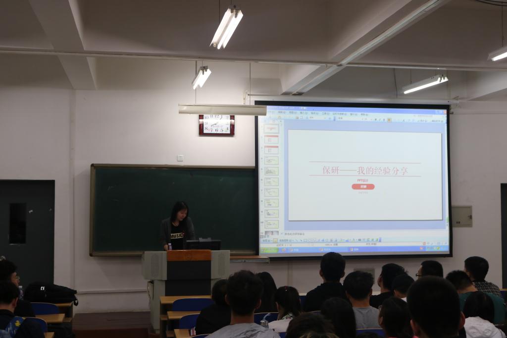 会上,通信工程13-2班郭慧,软件工程13-2班翟娜,网络工程13班包世光及通信工程13-1班李信四位同学就考研备战、保研选择、公务员应考及就业、择业经验等四个方面为学弟学妹们讲述了自己的经历,分享了自己的经验,并鼓励他们大四这一年一定要端正态度,调整好心态,信心满满的去迎接挑战,碰到困难一定要多争取、多询问、多借鉴、多付出,大胆尝试,挑战自我,赢得一个美好的明天。