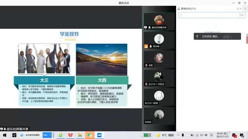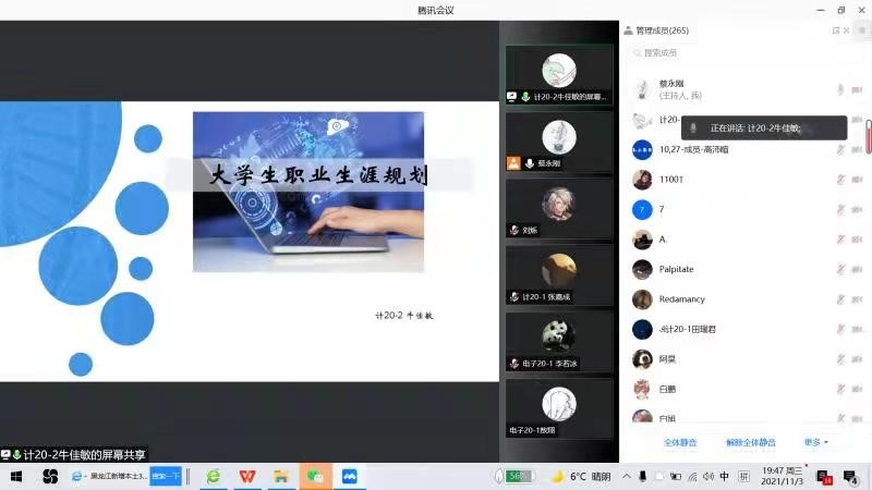 11月3日晚,我院通过腾讯会议平台举办2021年大学生职业生涯发展与规划大赛。学院团学办公室赵智琦及蔡永刚两位老师出席大赛并担任评委,学院2020级近270名学生线上观摩了比赛。