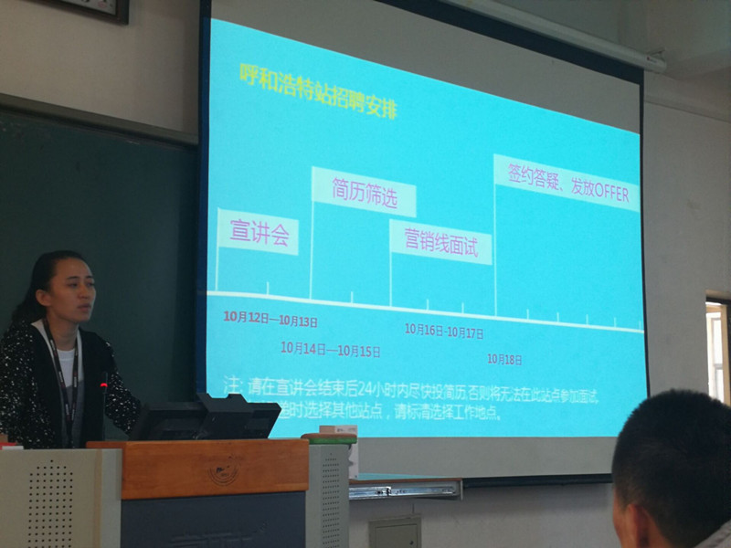 会后,海康呼和浩特分公司人力资源部经理卢陶女士为毕业生介绍了海康本次校园行的招聘岗位及要求,并现场收简历为下一步面试环节做准备。