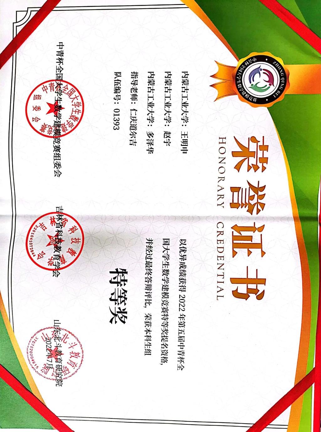 下面,将对部分荣誉进行展示,由于有些比赛获奖证书尚未下发,下发后将补充: