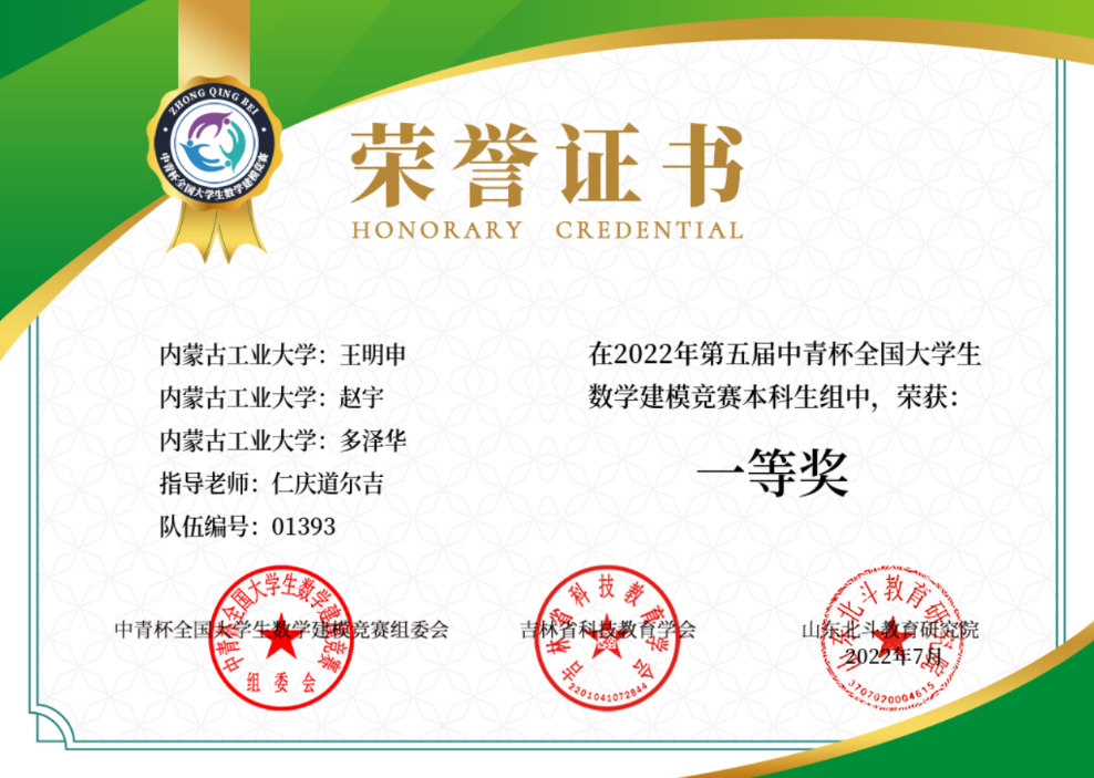 中青杯数学建模竞赛在培养大学生的创新意识、协作精神及运用数学方法和科技教育解决社会问题的能力中发挥了重要作用。